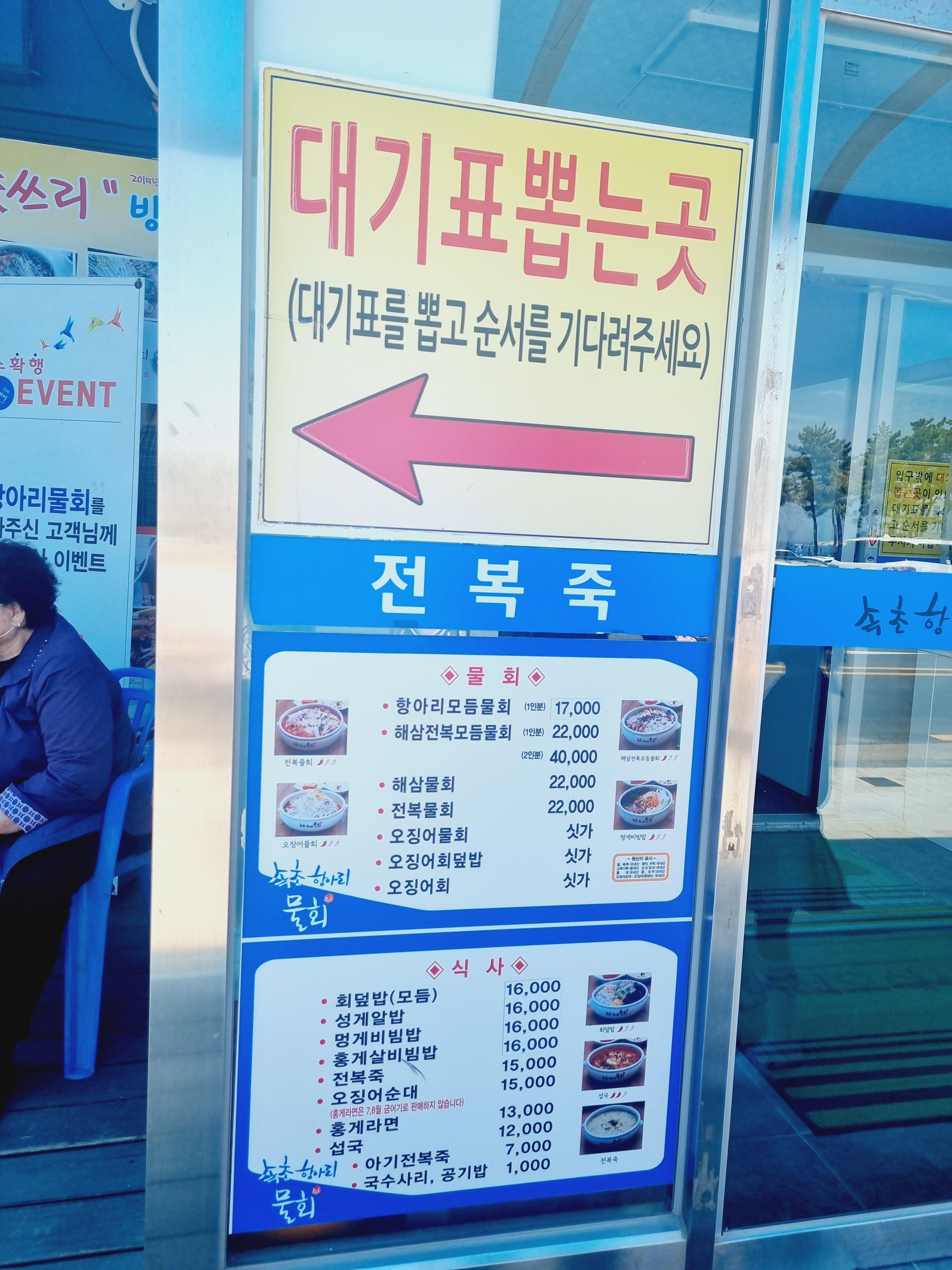 요렇게! 속초항아리물회 대기표부터 뽑아주세용