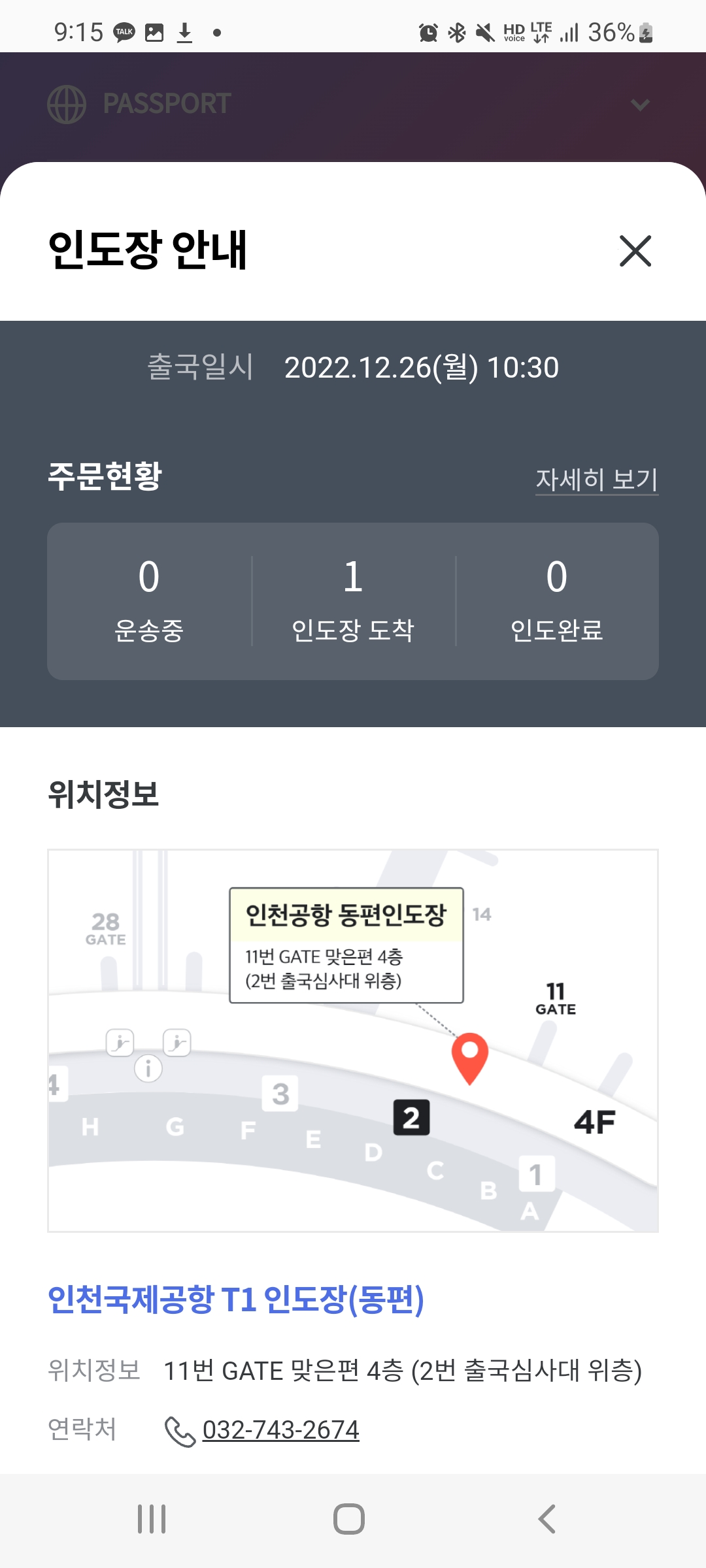 해외로 출국시 어플을 확인해보면 인도장도착이 떠 있게 됩니다. 여러 면세점에서 면세품을 구매한 경우 헷갈릴 수 있으므로 잘 확인하는게 좋습니다