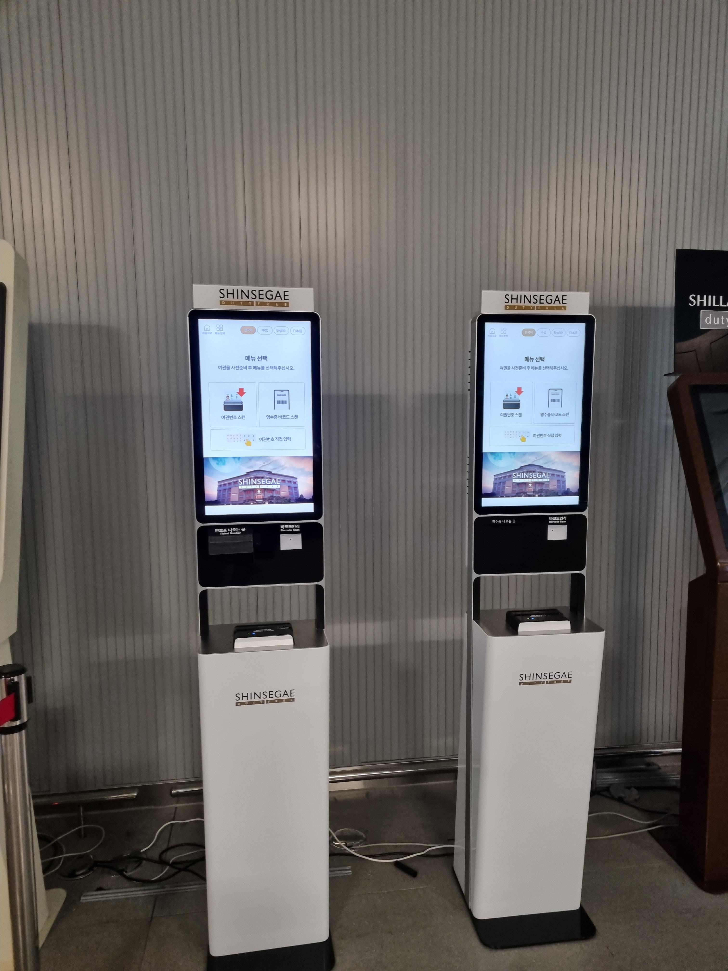 인도장을 찾으셨으면 가장 먼저 해야 하는 일은 이런 키오스크를 찾는 것입니다. (동편, 서편 모두 동일) 여기에 생년월일을 입력하고 여권을 스캔하거나 여권번호를 입력하면 번호표가 나옵니다. 따라서 면세품을 찾을 때 다른 준비물은 크게 필요 없으나 여권번호를 외우고 계시면 편리합니다. 여권 스캔의 경우 인식이 잘 안돼서 더 오래 걸리는 경우가 많습니다.