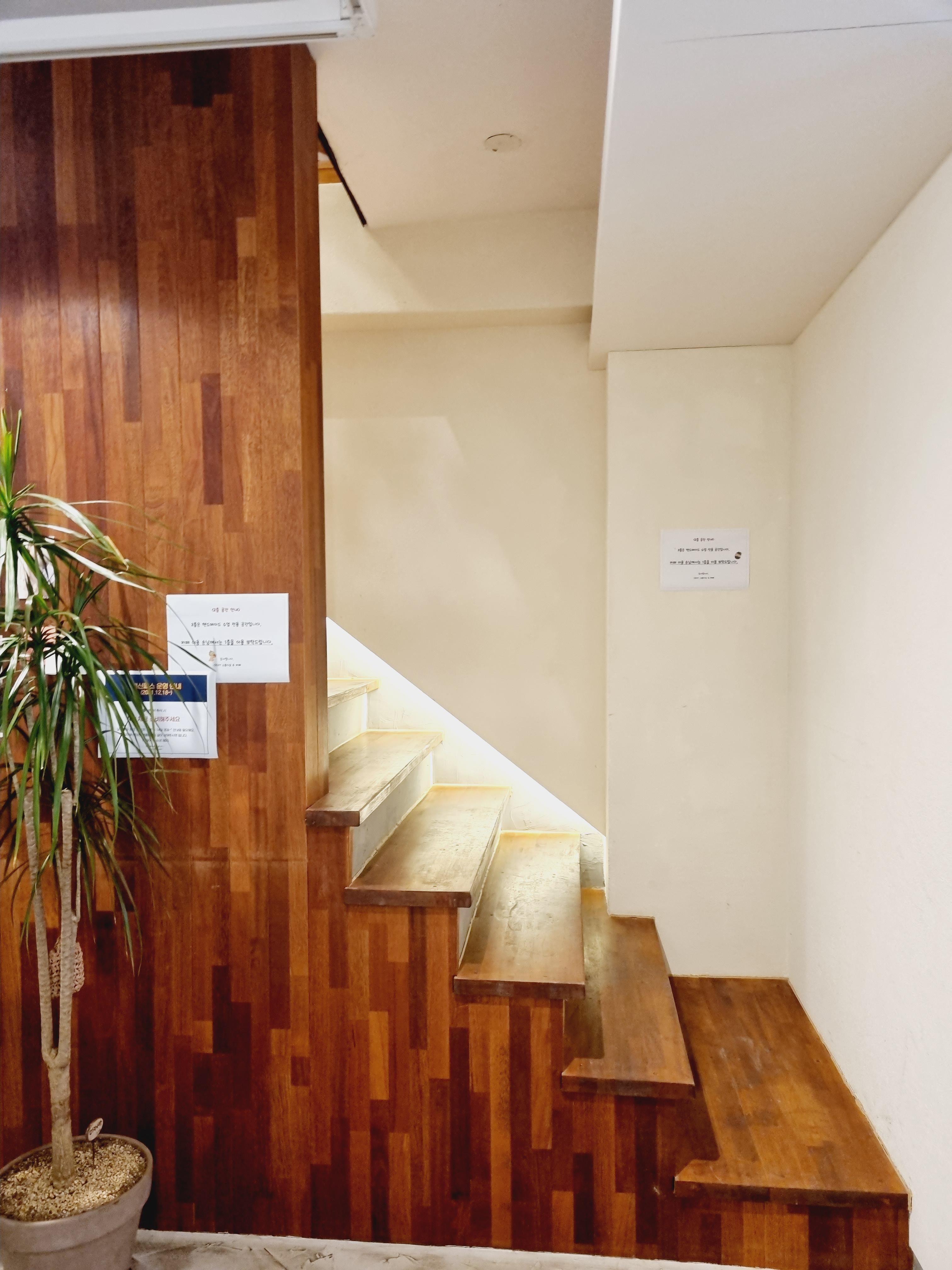 이쪽이 2층으로 올라가는 계단이에요!